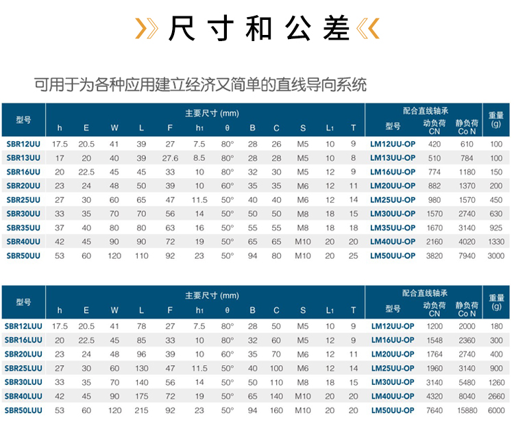 SBR12UU,SBR16UU,SBR20UU,SBR25UU,SBR30UU,SBR35UU,SBR40UU,SBR50UU