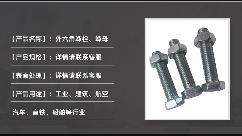 您所在的位置:全球零部件網(wǎng)>產(chǎn)品供應>非標定制>緊固件&五金件>熱鍍鋅電力鐵塔螺栓 光伏六角螺栓 達克羅風力發(fā)電螺栓外六角螺絲