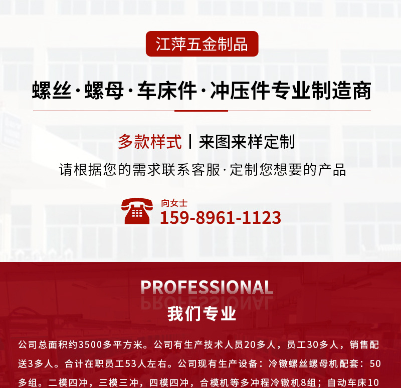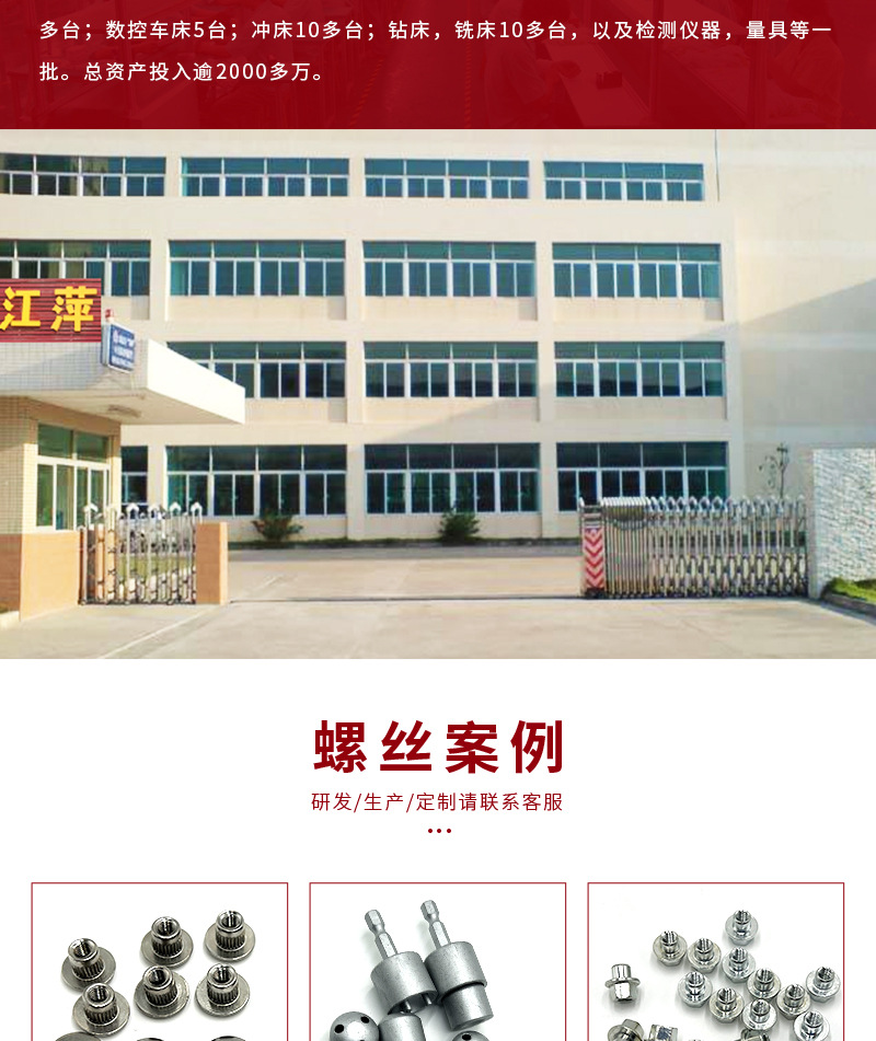 立即發(fā)布求購(gòu)意向本網(wǎng)頁(yè)所展示的有關(guān)【廠家蘑菇頭臺(tái)階螺絲定制異形螺絲鉆孔螺絲不銹鋼螺絲非標(biāo)螺母螺栓_螺母_東莞市江萍五金制品有限公司】的信息/圖片/參數(shù)等由全球零部件網(wǎng)的會(huì)員【東莞市江萍五金制品有限公司】提供,由全球零部件網(wǎng)會(huì)員【東莞市江萍五金制品有限公司】自行對(duì)信息/圖片/參數(shù)等的真實(shí)性、準(zhǔn)確性和合法性負(fù)責(zé),本平臺(tái)(本網(wǎng)站)僅提供展示服務(wù),請(qǐng)謹(jǐn)慎交易,因交易而產(chǎn)生的法律關(guān)系及法律糾紛由您自行協(xié)商解決,本平臺(tái)(本網(wǎng)站)對(duì)此不承擔(dān)任何責(zé)任。您在本網(wǎng)頁(yè)可以瀏覽【廠家蘑菇頭臺(tái)階螺絲定制異形螺絲鉆孔螺絲不銹鋼螺絲非標(biāo)螺母螺栓_螺母_東莞市江萍五金制品有限公司】有關(guān)的信息/圖片/價(jià)格等及提供【廠家蘑菇頭臺(tái)階螺絲定制異形螺絲鉆孔螺絲不銹鋼螺絲非標(biāo)螺母螺栓_螺母_東莞市江萍五金制品有限公司】的商家公司簡(jiǎn)介、聯(lián)系方式等信息。