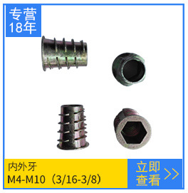m6m8m10公制鐵板螺母 英制1/4 5/16 3/8三孔圓柱螺母家具夾板螺母 規(guī)格種類全。有公制也有英制。其結(jié)構(gòu)為下面3孔固定。M6(1/4)的一般是配3*15的KA自攻釘,M8(5/16)的一般是配4*20KA自攻釘。M10(3/8)的一般是配5*20KA自攻釘。更多技術(shù)及產(chǎn)品參數(shù)可咨詢黃生。13712384605 備注:需開增值票的要另加13個點。