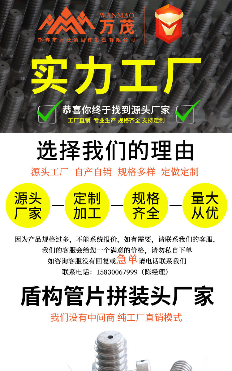 立即發(fā)布求購意向本網(wǎng)頁所展示的有關(guān)【廠家直供管片吊裝頭拼裝頭 盾構(gòu)管 吊環(huán)螺栓管片吊裝頭管片注漿頭_螺栓_邯鄲市萬茂緊固件制造有限公司】的信息/圖片/參數(shù)等由全球零部件網(wǎng)的會(huì)員【邯鄲市萬茂緊固件制造有限公司】提供,由全球零部件網(wǎng)會(huì)員【邯鄲市萬茂緊固件制造有限公司】自行對(duì)信息/圖片/參數(shù)等的真實(shí)性、準(zhǔn)確性和合法性負(fù)責(zé),本平臺(tái)(本網(wǎng)站)僅提供展示服務(wù),請(qǐng)謹(jǐn)慎交易,因交易而產(chǎn)生的法律關(guān)系及法律糾紛由您自行協(xié)商解決,本平臺(tái)(本網(wǎng)站)對(duì)此不承擔(dān)任何責(zé)任。您在本網(wǎng)頁可以瀏覽【廠家直供管片吊裝頭拼裝頭 盾構(gòu)管 吊環(huán)螺栓管片吊裝頭管片注漿頭_螺栓_邯鄲市萬茂緊固件制造有限公司】有關(guān)的信息/圖片/價(jià)格等及提供【廠家直供管片吊裝頭拼裝頭 盾構(gòu)管 吊環(huán)螺栓管片吊裝頭管片注漿頭_螺栓_邯鄲市萬茂緊固件制造有限公司】的商家公司簡介、聯(lián)系方式等信息。