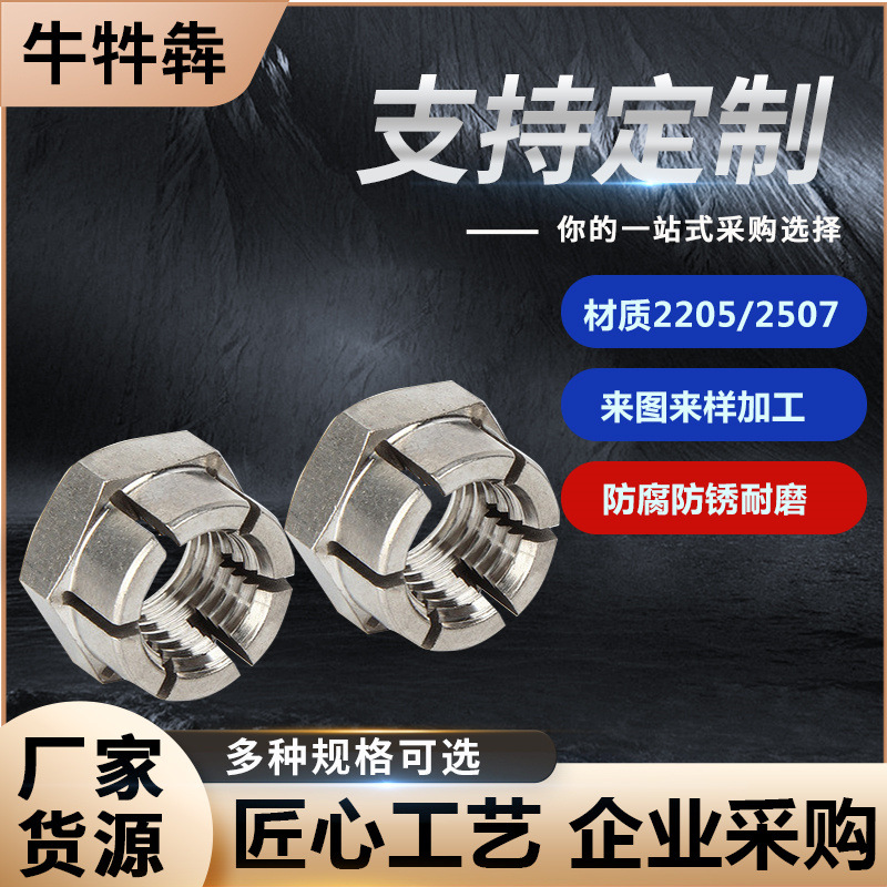 哈氏合金開槽螺母防滑防松316自鎖螺母304不銹鋼全金屬自鎖緊螺母
