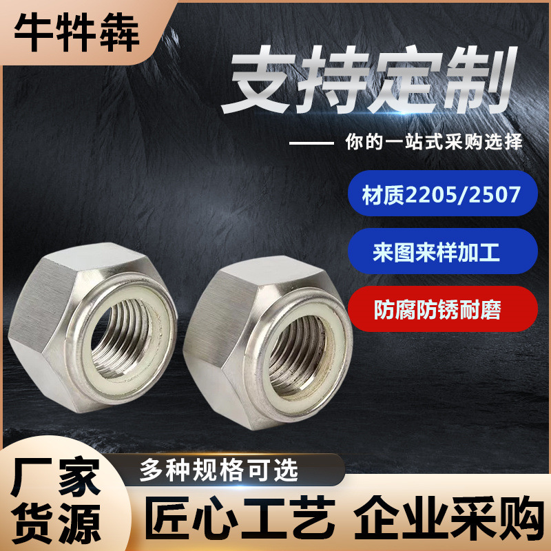 2205 2507雙相鋼 尼龍鎖緊不銹鋼螺母多規(guī)格可定DIN985鎖緊螺母