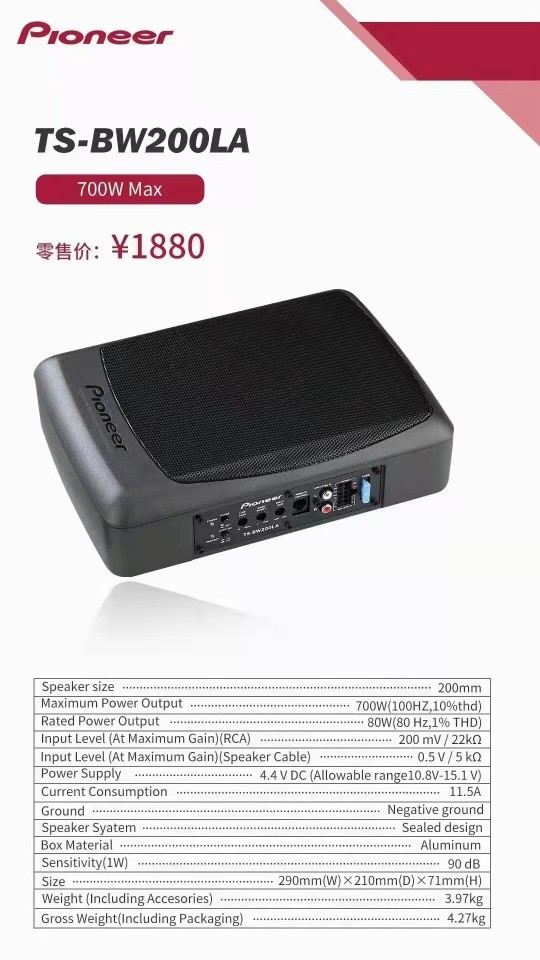 先鋒TS-BW200LA炮,先鋒6x9超薄炮,汽車改裝低音炮