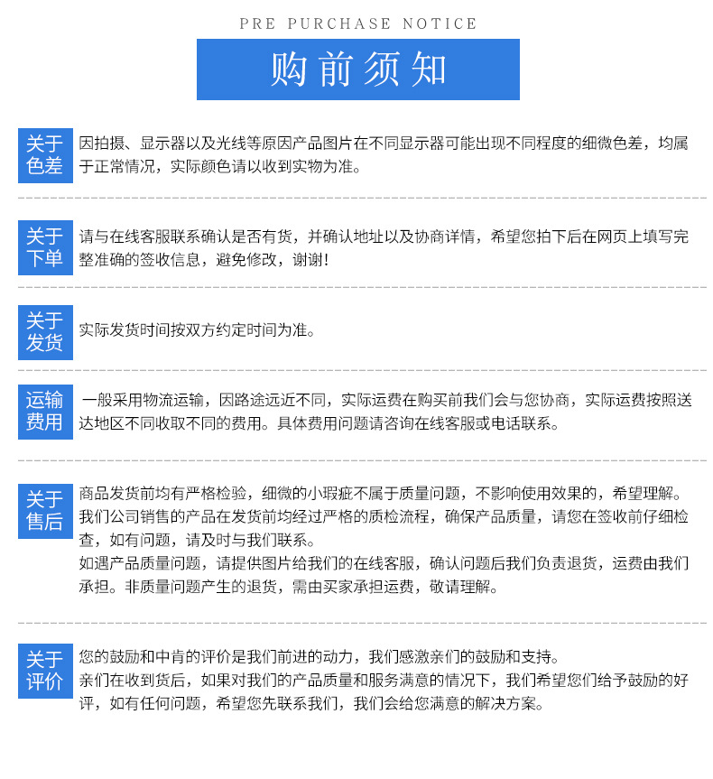物流發(fā)貨:因為本廠所在地址為山東省臨沂市,也被稱作物流之都,所以貨品數(shù)量的不同和地區(qū)遠(yuǎn)近的不同所產(chǎn)生的物流費用都是不同的。您購貨之前可以先聯(lián)系客服詢問物流費用。