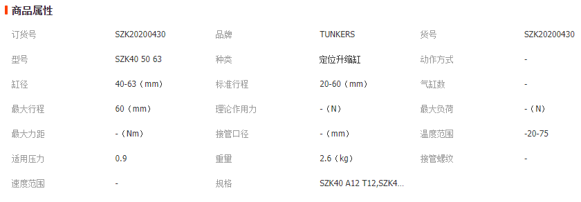 >產(chǎn)品供應(yīng)> HVAC汽車>發(fā)動機(jī)系統(tǒng)>氣缸及配件>TUNKERS德柯斯定位升縮缸銷 單導(dǎo)桿升縮氣缸SZK40 50 63 原裝正品 其他氣動元件 氣缸 氣動接頭