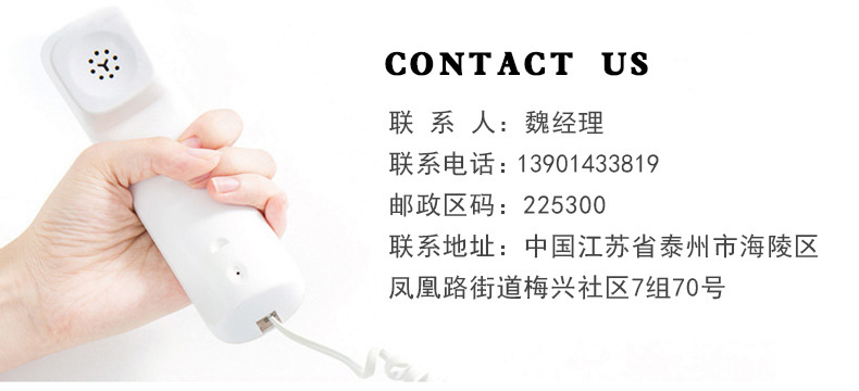 聯(lián)系地址:地址:中國 江蘇 泰州市 中國 江蘇 泰州市 海陵區(qū)鳳凰路街道梅興社區(qū)7組70號