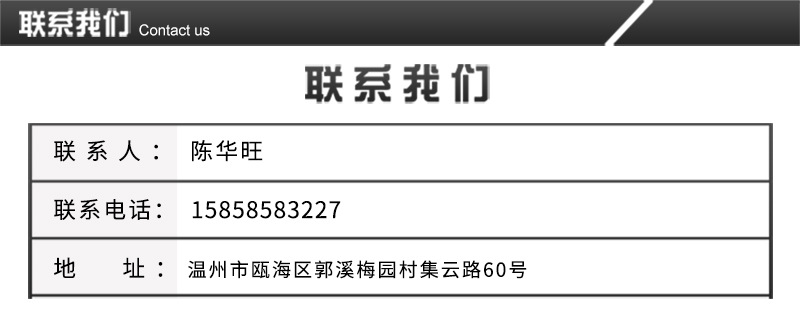 聯(lián)系地址:中國(guó) 浙江 溫州市 浙江省溫州市甌海區(qū)郭溪鎮(zhèn)塘下街39號(hào)