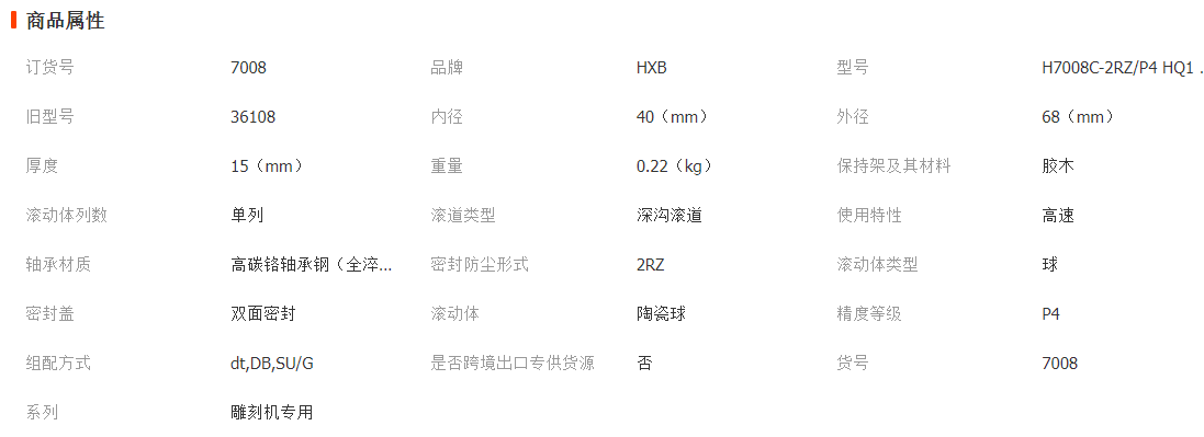 >產(chǎn)品供應(yīng)>家電行業(yè)>軸承>角接觸球軸承>HXB高速陶瓷球軸承H7008CTN 2RZHQ1 DB P4YGQ雕刻機(jī)專用軸承 角接觸球軸承 深溝球軸承