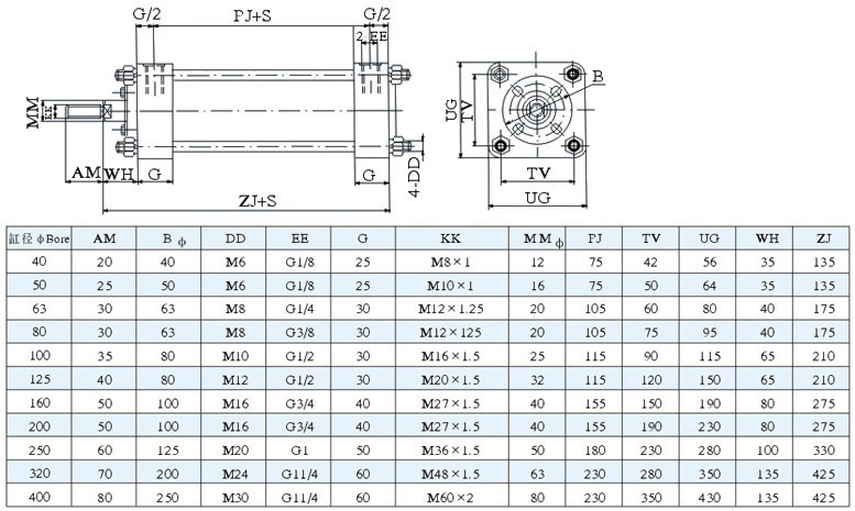QGA氣缸外型及基本尺寸