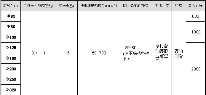 氣缸主要技術(shù)參數(shù)