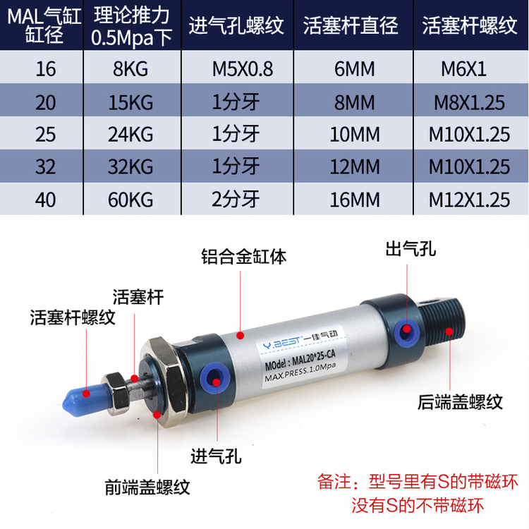 >產(chǎn)品供應(yīng)> HVAC汽車>發(fā)動(dòng)機(jī)系統(tǒng)>氣缸及配件>亞德客型MAL鋁合金迷你氣缸小型氣動(dòng)16/20/25/32/40*25X50x75X100 主營(yíng): 氣動(dòng)接頭 電磁閥 其他氣動(dòng)元件