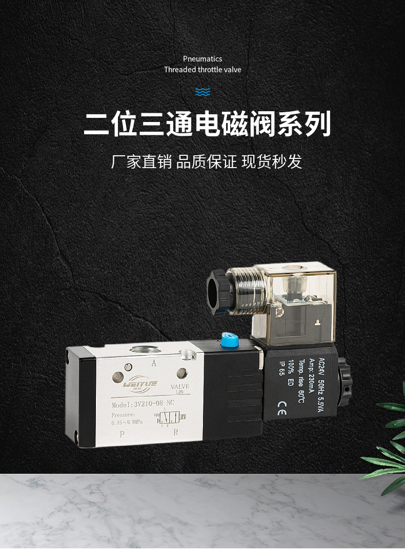 氣動電磁閥二位三通3V210-08-NC氣缸控制110一進(jìn)一出310 410換向