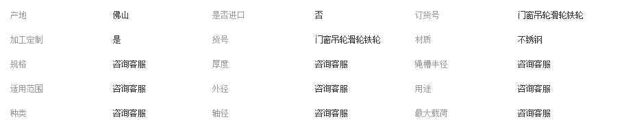 本網(wǎng)頁所展示的有關(guān)【門窗吊輪滑輪鐵輪_滑輪_佛山市沃科特軸承滑輪有限公司】的信息/圖片/參數(shù)等由全球零部件網(wǎng)的會(huì)員【佛山市沃科特軸承滑輪有限公司】提供,由全球零部件網(wǎng)會(huì)員【佛山市沃科特軸承滑輪有限公司】自行對(duì)信息/圖片/參數(shù)等的真實(shí)性、準(zhǔn)確性和合法性負(fù)責(zé),本平臺(tái)(本網(wǎng)站)僅提供展示服務(wù),請(qǐng)謹(jǐn)慎交易,因交易而產(chǎn)生的法律關(guān)系及法律糾紛由您自行協(xié)商解決,本平臺(tái)(本網(wǎng)站)對(duì)此不承擔(dān)任何責(zé)任。您在本網(wǎng)頁可以瀏覽【門窗吊輪滑輪鐵輪_滑輪_佛山市沃科特軸承滑輪有限公司】有關(guān)的信息/圖片/價(jià)格等及提供【門窗吊輪滑輪鐵輪_滑輪_佛山市沃科特軸承滑輪有限公司】的商家公司簡介、聯(lián)系方式等信息。