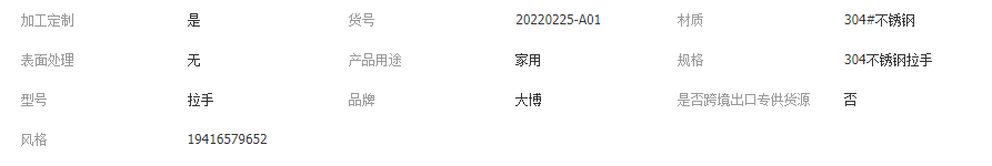 立即發(fā)布求購意向本網(wǎng)頁所展示的有關(guān)【304不銹鋼拉手簡約衣柜門抽屜把手實心小拉手五金配件工業(yè)U型拉手_拉手_東臺市大博金屬制品有限公司】的信息/圖片/參數(shù)等由全球零部件網(wǎng)的會員【東臺市大博金屬制品有限公司】提供,由全球零部件網(wǎng)會員【東臺市大博金屬制品有限公司】自行對信息/圖片/參數(shù)等的真實性、準確性和合法性負責,本平臺(本網(wǎng)站)僅提供展示服務(wù),請謹慎交易,因交易而產(chǎn)生的法律關(guān)系及法律糾紛由您自行協(xié)商解決,本平臺(本網(wǎng)站)對此不承擔任何責任。您在本網(wǎng)頁可以瀏覽【304不銹鋼拉手簡約衣柜門抽屜把手實心小拉手五金配件工業(yè)U型拉手_拉手_東臺市大博金屬制品有限公司】有關(guān)的信息/圖片/價格等及提供【304不銹鋼拉手簡約衣柜門抽屜把手實心小拉手五金配件工業(yè)U型拉手_拉手_東臺市大博金屬制品有限公司】的商家公司簡介、聯(lián)系方式等信息。