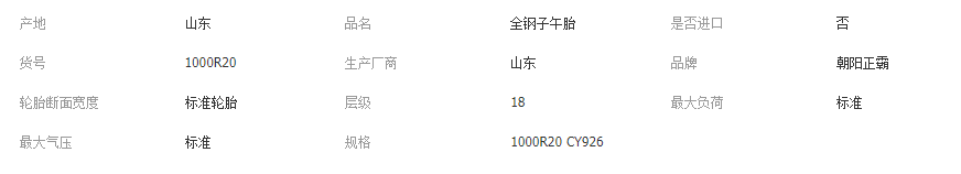 立即發(fā)布求購意向本網(wǎng)頁所展示的有關(guān)【朝陽正霸全鋼絲子午線輪胎 CY926花紋 1000R20輪胎批發(fā)零售_輪胎_山東藍洞輪胎有限公司】的信息/圖片/參數(shù)等由全球零部件網(wǎng)的會員【山東藍洞輪胎有限公司】提供,由全球零部件網(wǎng)會員【山東藍洞輪胎有限公司】自行對信息/圖片/參數(shù)等的真實性、準(zhǔn)確性和合法性負(fù)責(zé),本平臺(本網(wǎng)站)僅提供展示服務(wù),請謹(jǐn)慎交易,因交易而產(chǎn)生的法律關(guān)系及法律糾紛由您自行協(xié)商解決,本平臺(本網(wǎng)站)對此不承擔(dān)任何責(zé)任。您在本網(wǎng)頁可以瀏覽【朝陽正霸全鋼絲子午線輪胎 CY926花紋 1000R20輪胎批發(fā)零售_輪胎_山東藍洞輪胎有限公司】有關(guān)的信息/圖片/價格等及提供【朝陽正霸全鋼絲子午線輪胎 CY926花紋 1000R20輪胎批發(fā)零售_輪胎_山東藍洞輪胎有限公司】的商家公司簡介、聯(lián)系方式等信息。