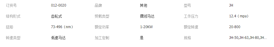 您所在的位置:全球零部件網(wǎng)>產(chǎn)品供應(yīng)>工程配件>液壓密封裝置>液壓馬達(dá)>小型油馬達(dá)JH-50,JH-160,JH-400代替進(jìn)口擺線液壓馬達(dá)JH-200