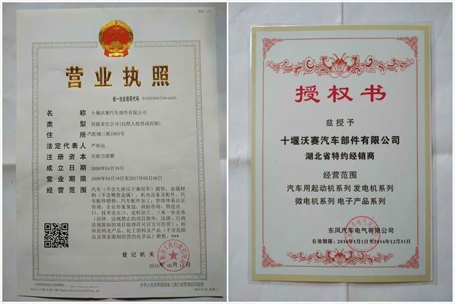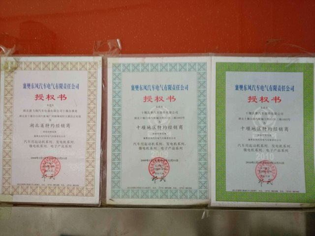 同時(shí)本公司也是襄樊東風(fēng)汽車(chē)電氣有限公司的十堰地區(qū)特約經(jīng)銷(xiāo)商,特約經(jīng)銷(xiāo)商編號(hào):T2008-079,常年存有大批現(xiàn)貨以備東風(fēng)汽車(chē)售后調(diào)件!