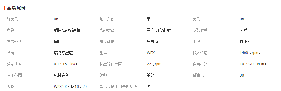 本網(wǎng)頁所展示的有關(guān)【W(wǎng)PX系列減速機 渦輪箱、 蝸輪蝸桿減速機 小型減速器量大從優(yōu)_液壓減速機_無錫瑞德意傳動設(shè)備有限公司】的信息/圖片/參數(shù)等由全球零部件網(wǎng)的會員【無錫瑞德意傳動設(shè)備有限公司】提供,由全球零部件網(wǎng)會員【無錫瑞德意傳動設(shè)備有限公司】自行對信息/圖片/參數(shù)等的真實性、準確性和合法性負責(zé),本平臺(本網(wǎng)站)僅提供展示服務(wù),請謹慎交易,因交易而產(chǎn)生的法律關(guān)系及法律糾紛由您自行協(xié)商解決,本平臺(本網(wǎng)站)對此不承擔(dān)任何責(zé)任。您在本網(wǎng)頁可以瀏覽【W(wǎng)PX系列減速機 渦輪箱、 蝸輪蝸桿減速機 小型減速器量大從優(yōu)_液壓減速機_無錫瑞德意傳動設(shè)備有限公司】有關(guān)的信息/圖片/價格等及提供【W(wǎng)PX系列減速機 渦輪箱、 蝸輪蝸桿減速機 小型減速器量大從優(yōu)_液壓減速機_無錫瑞德意傳動設(shè)備有限公司】的商家公司簡介、聯(lián)系方式等信息。