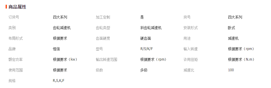 立即發(fā)布求購意向本網(wǎng)頁所展示的有關(guān)【R/S/K/F四大系列斜齒輪減速機蝸輪蝸桿硬齒面減速器帶電機減速箱_液壓減速機_紹興上虞恒信機械有限公司】的信息/圖片/參數(shù)等由全球零部件網(wǎng)的會員【紹興上虞恒信機械有限公司】提供,由全球零部件網(wǎng)會員【紹興上虞恒信機械有限公司】自行對信息/圖片/參數(shù)等的真實性、準(zhǔn)確性和合法性負責(zé),本平臺(本網(wǎng)站)僅提供展示服務(wù),請謹(jǐn)慎交易,因交易而產(chǎn)生的法律關(guān)系及法律糾紛由您自行協(xié)商解決,本平臺(本網(wǎng)站)對此不承擔(dān)任何責(zé)任。您在本網(wǎng)頁可以瀏覽【R/S/K/F四大系列斜齒輪減速機蝸輪蝸桿硬齒面減速器帶電機減速箱_液壓減速機_紹興上虞恒信機械有限公司】有關(guān)的信息/圖片/價格等及提供【R/S/K/F四大系列斜齒輪減速機蝸輪蝸桿硬齒面減速器帶電機減速箱_液壓減速機_紹興上虞恒信機械有限公司】的商家公司簡介、聯(lián)系方式等信息。