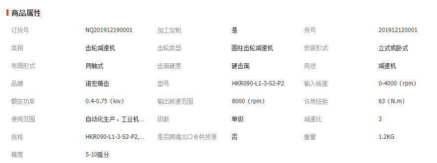 行星減速機(jī)產(chǎn)品規(guī)格: