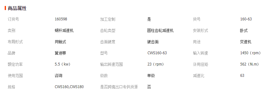 >產(chǎn)品供應(yīng)>工程配件>液壓密封裝置>液壓減速機(jī)>滄州迪賽廠家供應(yīng)CWS160-63-3型圓弧齒圓柱蝸輪蝸桿減速機(jī) 主營(yíng): 減速/變速機(jī) 聯(lián)軸器