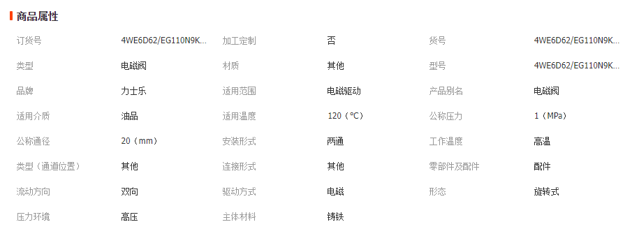您所在的位置:全球零部件網(wǎng)>產(chǎn)品供應(yīng)>電動(dòng)工具>液壓系統(tǒng)>電磁閥>原裝 Rexroth 力士樂 電磁閥4WE6D62/EG110N9K4/V
