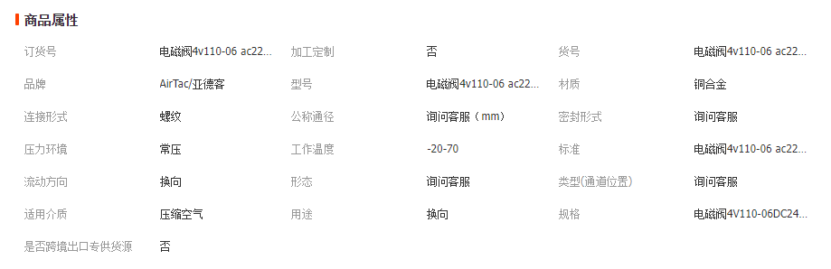 您所在的位置:全球零部件網(wǎng)>產(chǎn)品供應(yīng)>電動(dòng)工具>液壓系統(tǒng)>電磁閥>亞德客電磁閥4V210-08 4V310-10 AC220VDC24V二位五通換向閥氣閥