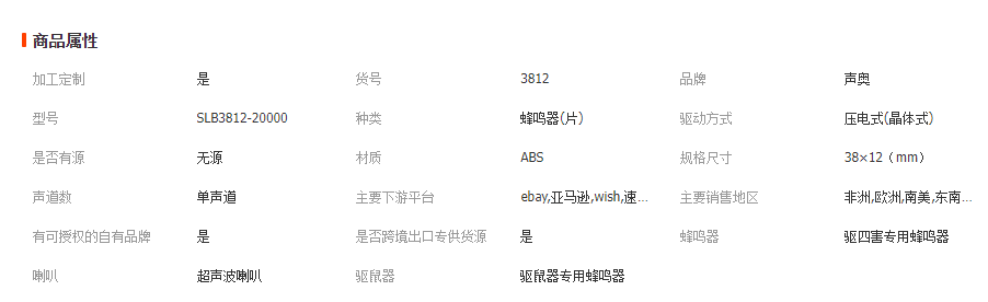 立即發(fā)布求購(gòu)意向本網(wǎng)頁(yè)所展示的有關(guān)【直徑38超聲波喇叭 無(wú)源蜂鳴器 四害專(zhuān)用超聲波喇叭 超聲波蜂鳴器_蜂鳴器_中山市聲奧電子有限公司】的信息/圖片/參數(shù)等由全球零部件網(wǎng)的會(huì)員【中山市聲奧電子有限公司】提供,由全球零部件網(wǎng)會(huì)員【中山市聲奧電子有限公司】自行對(duì)信息/圖片/參數(shù)等的真實(shí)性、準(zhǔn)確性和合法性負(fù)責(zé),本平臺(tái)(本網(wǎng)站)僅提供展示服務(wù),請(qǐng)謹(jǐn)慎交易,因交易而產(chǎn)生的法律關(guān)系及法律糾紛由您自行協(xié)商解決,本平臺(tái)(本網(wǎng)站)對(duì)此不承擔(dān)任何責(zé)任。您在本網(wǎng)頁(yè)可以瀏覽【直徑38超聲波喇叭 無(wú)源蜂鳴器 四害專(zhuān)用超聲波喇叭 超聲波蜂鳴器_蜂鳴器_中山市聲奧電子有限公司】有關(guān)的信息/圖片/價(jià)格等及提供【直徑38超聲波喇叭 無(wú)源蜂鳴器 四害專(zhuān)用超聲波喇叭 超聲波蜂鳴器_蜂鳴器_中山市聲奧電子有限公司】的商家公司簡(jiǎn)介、聯(lián)系方式等信息。