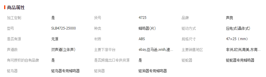 立即發(fā)布求購意向本網(wǎng)頁所展示的有關(guān)【4725壓電超聲波驅(qū)鼠蟲40KHz高頻號角驅(qū)狗驅(qū)鳥驅(qū)蛇超聲波喇叭25KHz_蜂鳴器_中山市聲奧電子有限公司】的信息/圖片/參數(shù)等由全球零部件網(wǎng)的會員【中山市聲奧電子有限公司】提供,由全球零部件網(wǎng)會員【中山市聲奧電子有限公司】自行對信息/圖片/參數(shù)等的真實性、準確性和合法性負責,本平臺(本網(wǎng)站)僅提供展示服務,請謹慎交易,因交易而產(chǎn)生的法律關(guān)系及法律糾紛由您自行協(xié)商解決,本平臺(本網(wǎng)站)對此不承擔任何責任。您在本網(wǎng)頁可以瀏覽【4725壓電超聲波驅(qū)鼠蟲40KHz高頻號角驅(qū)狗驅(qū)鳥驅(qū)蛇超聲波喇叭25KHz_蜂鳴器_中山市聲奧電子有限公司】有關(guān)的信息/圖片/價格等及提供【4725壓電超聲波驅(qū)鼠蟲40KHz高頻號角驅(qū)狗驅(qū)鳥驅(qū)蛇超聲波喇叭25KHz_蜂鳴器_中山市聲奧電子有限公司】的商家公司簡介、聯(lián)系方式等信息。
