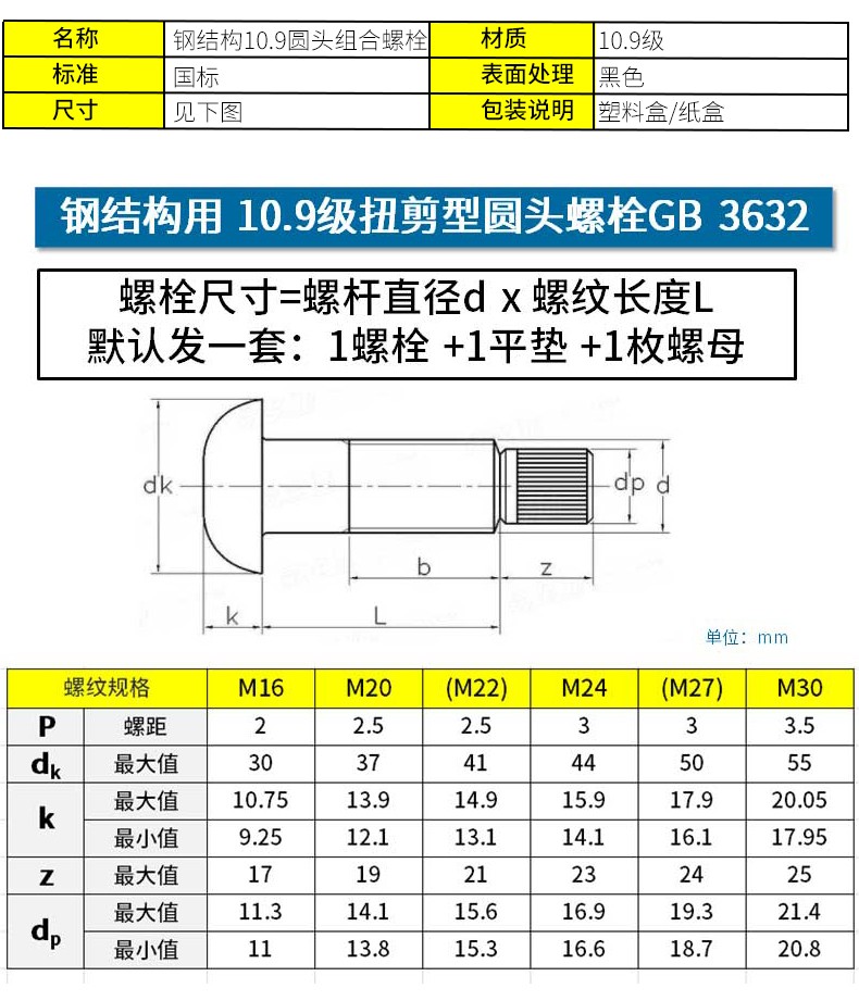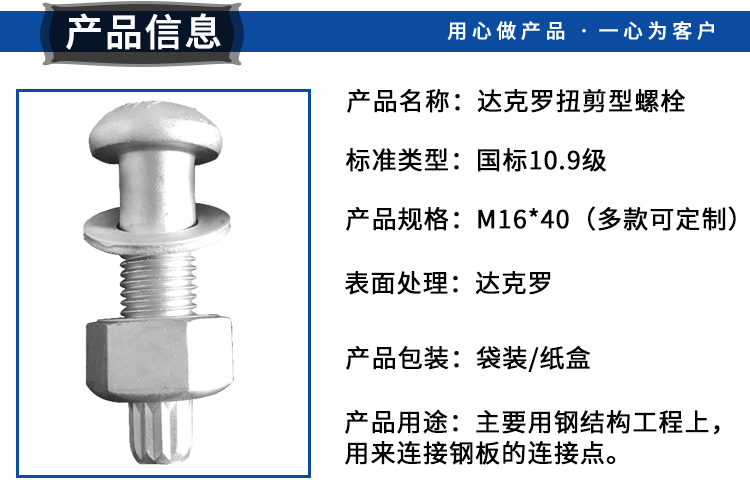 >產(chǎn)品供應(yīng)>家電行業(yè)>緊固件>螺栓>扭剪型螺栓高強(qiáng)度達(dá)克羅 10.9S級(jí)鋼結(jié)構(gòu)半螺紋圓頭連接副 緊固件、電力器材、金屬制品制造、銷售;鋼結(jié)構(gòu)配件、工礦配件、鐵路配件、五金工具、交通設(shè)施配件、光伏配件、建筑配件、鋼…