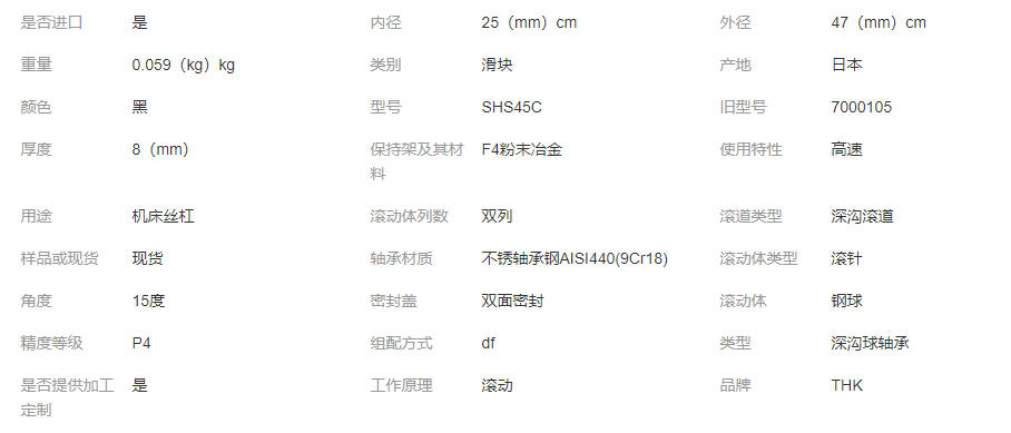 立即發(fā)布求購意向本網(wǎng)頁所展示的有關(guān)【美斯特 THK滑塊 SHS45C 直線導(dǎo)軌 直線軸承15/20/25/30/35_導(dǎo)軌_天津美斯特軸承有限公司】的信息/圖片/參數(shù)等由全球零部件網(wǎng)的會員【天津美斯特軸承有限公司】提供,由全球零部件網(wǎng)會員【天津美斯特軸承有限公司】自行對信息/圖片/參數(shù)等的真實性、準(zhǔn)確性和合法性負(fù)責(zé),本平臺(本網(wǎng)站)僅提供展示服務(wù),請謹(jǐn)慎交易,因交易而產(chǎn)生的法律關(guān)系及法律糾紛由您自行協(xié)商解決,本平臺(本網(wǎng)站)對此不承擔(dān)任何責(zé)任。您在本網(wǎng)頁可以瀏覽【美斯特 THK滑塊 SHS45C 直線導(dǎo)軌 直線軸承15/20/25/30/35_導(dǎo)軌_天津美斯特軸承有限公司】有關(guān)的信息/圖片/價格等及提供【美斯特 THK滑塊 SHS45C 直線導(dǎo)軌 直線軸承15/20/25/30/35_導(dǎo)軌_天津美斯特軸承有限公司】的商家公司簡介、聯(lián)系方式等信息。