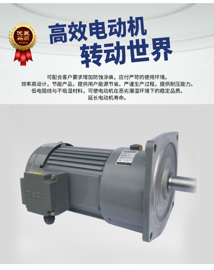 東元電機(jī)貫徹“品質(zhì)為先一”的理念, 生產(chǎn)符合世界各國(guó)標(biāo)準(zhǔn)的產(chǎn)品, 擁有承制功率從1/4HP到100000HP低中高壓與14500V高電壓電動(dòng)機(jī)的強(qiáng)力實(shí)力. TECO(東元)和TECO-Westinghouse(東元西屋)均為東元電機(jī)的商標(biāo)品牌.