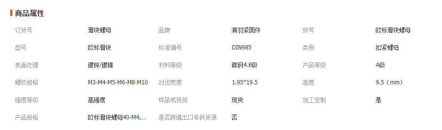 立即發(fā)布求購意向本網(wǎng)頁所展示的有關(guān)【歐標(biāo)鋁型材配件 T型螺母 滑塊螺母 20-30-40-45系列M3M4M5M6M8M10_螺母_樂清市柳市清羽緊固件批發(fā)部】的信息/圖片/參數(shù)等由全球零部件網(wǎng)的會員【樂清市柳市清羽緊固件批發(fā)部】提供,由全球零部件網(wǎng)會員【樂清市柳市清羽緊固件批發(fā)部】自行對信息/圖片/參數(shù)等的真實性、準(zhǔn)確性和合法性負(fù)責(zé),本平臺(本網(wǎng)站)僅提供展示服務(wù),請謹(jǐn)慎交易,因交易而產(chǎn)生的法律關(guān)系及法律糾紛由您自行協(xié)商解決,本平臺(本網(wǎng)站)對此不承擔(dān)任何責(zé)任。您在本網(wǎng)頁可以瀏覽【歐標(biāo)鋁型材配件 T型螺母 滑塊螺母 20-30-40-45系列M3M4M5M6M8M10_螺母_樂清市柳市清羽緊固件批發(fā)部】有關(guān)的信息/圖片/價格等及提供【歐標(biāo)鋁型材配件 T型螺母 滑塊螺母 20-30-40-45系列M3M4M5M6M8M10_螺母_樂清市柳市清羽緊固件批發(fā)部】的商家公司簡介、聯(lián)系方式等信息。