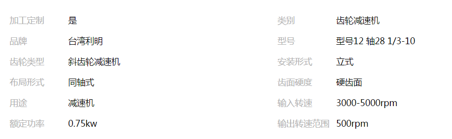 >產(chǎn)品供應(yīng)>綜合配件>減速器系列>供應(yīng)臺(tái)灣利明減速機(jī) 型號(hào)12 軸28 1/3-10 雙軸 SHD/SVD 0.75KW 機(jī)電設(shè)備 自動(dòng)化設(shè)備 電器成套設(shè)備 技術(shù)咨詢