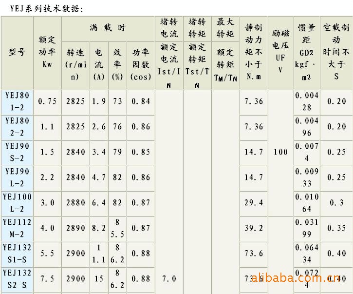 YEJ系列制動電動機的直流圓盤制動器安裝在電機非軸伸端的端蓋上。當(dāng)制動電動機接入電源,制動器也同時工作。由于電磁吸力作用,電磁鐵吸引銜鐵并壓縮彈簧,制動盤于銜鐵端蓋脫開,電動機開始運轉(zhuǎn)。當(dāng)切斷電源時,制動器電磁鐵失去磁吸力,彈簧推動銜鐵壓緊制動盤,在磨擦力矩作用下,電動機立即停止運轉(zhuǎn);我廠同時也生產(chǎn)相應(yīng)的YDEJ雙速(多速、遠極比)電動機。制動器電源由電機接線盒內(nèi)的整流器供給,3千瓦及以下為AC220V-DC99V,4千瓦及以上為AC380V-DC170V(特殊時也可按照廠方要求設(shè)計如(DC24V))→YEJ系列電磁制動電機,能夠?qū)崿F(xiàn)電機失電后快速制動??熘苿訒r間YEJ2-63-90電機小于0.15秒,YEJ-100-160電機小于0.20秒,該電機可根據(jù)用戶要求通過改變接線盒的接線實現(xiàn)慢制動。該系列電機噪聲小,制動性能可靠。其工作原理是:當(dāng)電機通電后,電磁制動器通過220V交流整流得到198V直流電,這時銜鐵被電磁吸合,使制動盤處于可旋轉(zhuǎn)狀態(tài),并但電機自由旋轉(zhuǎn)。當(dāng)電機失電時電磁鐵失電,銜鐵立即被彈簧頂住,使制動盤與電機后端蓋壓合在一起,停止轉(zhuǎn)動。