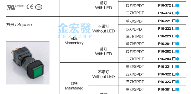 >產(chǎn)品供應(yīng)>電動(dòng)工具>電氣系統(tǒng)>電源開(kāi)關(guān)及按鈕>16MM金宏按鈕開(kāi)關(guān) 方形按鍵電源自復(fù)位自鎖帶燈LED矩形F16-291 主營(yíng): 按鈕開(kāi)關(guān) 設(shè)備指示燈 輕觸開(kāi)關(guān)