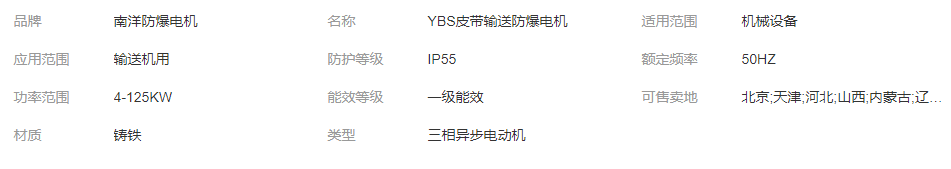 >產(chǎn)品供應(yīng)>工程配件>傳動系統(tǒng)>驅(qū)動電機(jī)>南洋防爆電機(jī) 廠家供應(yīng)YBS防爆80V/660V 額定頻率 50Hz 電機(jī)、電機(jī)配件的生產(chǎn)銷售、維修及試驗(yàn)測試,機(jī)電、機(jī)械產(chǎn)品的進(jìn)出口貿(mào)易;房屋租賃。(涉及許可審批項(xiàng)目,需憑許可證經(jīng)營,未…