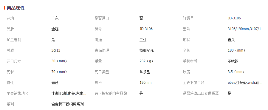 立即發(fā)布求購意向本網(wǎng)頁所展示的有關(guān)【金雕 全不銹鋼廚房剪 海鮮剪 家用剪 雞骨剪 魚骨剪 不銹鋼剪_剪刀類_佛山市利雕五金工具有限公司】的信息/圖片/參數(shù)等由全球零部件網(wǎng)的會(huì)員【佛山市利雕五金工具有限公司】提供,由全球零部件網(wǎng)會(huì)員【佛山市利雕五金工具有限公司】自行對(duì)信息/圖片/參數(shù)等的真實(shí)性、準(zhǔn)確性和合法性負(fù)責(zé),本平臺(tái)(本網(wǎng)站)僅提供展示服務(wù),請(qǐng)謹(jǐn)慎交易,因交易而產(chǎn)生的法律關(guān)系及法律糾紛由您自行協(xié)商解決,本平臺(tái)(本網(wǎng)站)對(duì)此不承擔(dān)任何責(zé)任。您在本網(wǎng)頁可以瀏覽【金雕 全不銹鋼廚房剪 海鮮剪 家用剪 雞骨剪 魚骨剪 不銹鋼剪_剪刀類_佛山市利雕五金工具有限公司】有關(guān)的信息/圖片/價(jià)格等及提供【金雕 全不銹鋼廚房剪 海鮮剪 家用剪 雞骨剪 魚骨剪 不銹鋼剪_剪刀類_佛山市利雕五金工具有限公司】的商家公司簡介、聯(lián)系方式等信息。