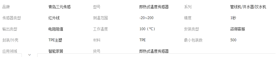 立即發(fā)布求購意向本網(wǎng)頁所展示的有關(guān)【即熱式熱水器感溫探頭 NTC溫度傳感器 飲水機(jī)即熱式溫度傳感器_傳感器_青島三元傳感技術(shù)有限公司】的信息/圖片/參數(shù)等由全球零部件網(wǎng)的會(huì)員【青島三元傳感技術(shù)有限公司】提供,由全球零部件網(wǎng)會(huì)員【青島三元傳感技術(shù)有限公司】自行對(duì)信息/圖片/參數(shù)等的真實(shí)性、準(zhǔn)確性和合法性負(fù)責(zé),本平臺(tái)(本網(wǎng)站)僅提供展示服務(wù),請(qǐng)謹(jǐn)慎交易,因交易而產(chǎn)生的法律關(guān)系及法律糾紛由您自行協(xié)商解決,本平臺(tái)(本網(wǎng)站)對(duì)此不承擔(dān)任何責(zé)任。您在本網(wǎng)頁可以瀏覽【即熱式熱水器感溫探頭 NTC溫度傳感器 飲水機(jī)即熱式溫度傳感器_傳感器_青島三元傳感技術(shù)有限公司】有關(guān)的信息/圖片/價(jià)格等及提供【即熱式熱水器感溫探頭 NTC溫度傳感器 飲水機(jī)即熱式溫度傳感器_傳感器_青島三元傳感技術(shù)有限公司】的商家公司簡(jiǎn)介、聯(lián)系方式等信息。