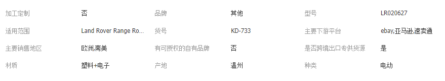 立即發(fā)布求購(gòu)意向本網(wǎng)頁(yè)所展示的有關(guān)【適用于06-09路虎攬勝汽車懸架高度調(diào)節(jié)車身高度傳感器 LR020627_傳感器_浙江可得電子科技有限公司】的信息/圖片/參數(shù)等由全球零部件網(wǎng)的會(huì)員【浙江可得電子科技有限公司】提供,由全球零部件網(wǎng)會(huì)員【浙江可得電子科技有限公司】自行對(duì)信息/圖片/參數(shù)等的真實(shí)性、準(zhǔn)確性和合法性負(fù)責(zé),本平臺(tái)(本網(wǎng)站)僅提供展示服務(wù),請(qǐng)謹(jǐn)慎交易,因交易而產(chǎn)生的法律關(guān)系及法律糾紛由您自行協(xié)商解決,本平臺(tái)(本網(wǎng)站)對(duì)此不承擔(dān)任何責(zé)任。您在本網(wǎng)頁(yè)可以瀏覽【適用于06-09路虎攬勝汽車懸架高度調(diào)節(jié)車身高度傳感器 LR020627_傳感器_浙江可得電子科技有限公司】有關(guān)的信息/圖片/價(jià)格等及提供【適用于06-09路虎攬勝汽車懸架高度調(diào)節(jié)車身高度傳感器 LR020627_傳感器_浙江可得電子科技有限公司】的商家公司簡(jiǎn)介、聯(lián)系方式等信息。