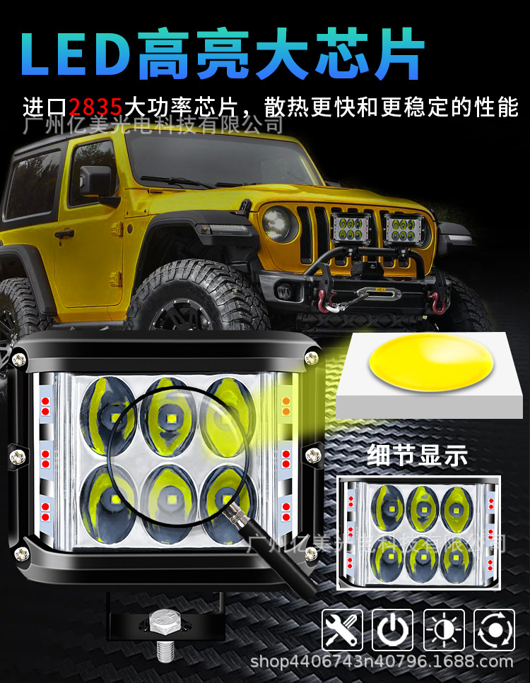 >產(chǎn)品供應(yīng)> HVAC汽車(chē)>車(chē)身件>汽車(chē)燈具>45W60W汽車(chē)led工作燈三面發(fā)光越野車(chē)改裝頂杠爆閃燈前照燈LED車(chē)燈 主營(yíng): 工作/檢修燈 大燈、前照燈 摩托車(chē)