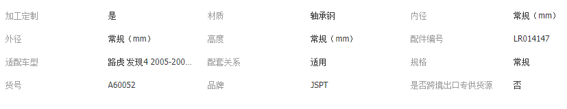 立即發(fā)布求購(gòu)意向本網(wǎng)頁(yè)所展示的有關(guān)【LR014147 RFM500010 LR048083 LR076692攬勝發(fā)現(xiàn)3LR4前輪輪轂單元_軸承_浙江金賽精密科技股份有限公司】的信息/圖片/參數(shù)等由全球零部件網(wǎng)的會(huì)員【浙江金賽精密科技股份有限公司】提供,由全球零部件網(wǎng)會(huì)員【浙江金賽精密科技股份有限公司】自行對(duì)信息/圖片/參數(shù)等的真實(shí)性、準(zhǔn)確性和合法性負(fù)責(zé),本平臺(tái)(本網(wǎng)站)僅提供展示服務(wù),請(qǐng)謹(jǐn)慎交易,因交易而產(chǎn)生的法律關(guān)系及法律糾紛由您自行協(xié)商解決,本平臺(tái)(本網(wǎng)站)對(duì)此不承擔(dān)任何責(zé)任。您在本網(wǎng)頁(yè)可以瀏覽【LR014147 RFM500010 LR048083 LR076692攬勝發(fā)現(xiàn)3LR4前輪輪轂單元_軸承_浙江金賽精密科技股份有限公司】有關(guān)的信息/圖片/價(jià)格等及提供【LR014147 RFM500010 LR048083 LR076692攬勝發(fā)現(xiàn)3LR4前輪輪轂單元_軸承_浙江金賽精密科技股份有限公司】的商家公司簡(jiǎn)介、聯(lián)系方式等信息。