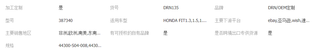 本網(wǎng)頁所展示的有關【適用本田輪轂軸承DAC3873WCS53 XGB41135 38BWD26E低噪音高轉_軸承_臨清市德瑞納軸承有限公司】的信息/圖片/參數(shù)等由全球零部件網(wǎng)的會員【臨清市德瑞納軸承有限公司】提供,由全球零部件網(wǎng)會員【臨清市德瑞納軸承有限公司】自行對信息/圖片/參數(shù)等的真實性、準確性和合法性負責,本平臺(本網(wǎng)站)僅提供展示服務,請謹慎交易,因交易而產(chǎn)生的法律關系及法律糾紛由您自行協(xié)商解決,本平臺(本網(wǎng)站)對此不承擔任何責任。您在本網(wǎng)頁可以瀏覽【適用本田輪轂軸承DAC3873WCS53 XGB41135 38BWD26E低噪音高轉_軸承_臨清市德瑞納軸承有限公司】有關的信息/圖片/價格等及提供【適用本田輪轂軸承DAC3873WCS53 XGB41135 38BWD26E低噪音高轉_軸承_臨清市德瑞納軸承有限公司】的商家公司簡介、聯(lián)系方式等信息。