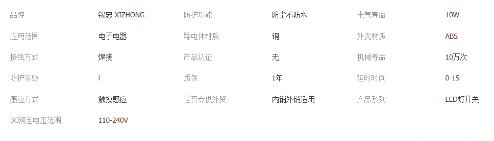 立即發(fā)布求購意向本網(wǎng)頁所展示的有關(guān)【廠家直銷觸摸開關(guān)觸控感應(yīng)調(diào)光開關(guān)LED床頭臺燈觸碰感應(yīng)帶燈開關(guān)_開關(guān)_中山市錫忠電子科技有限公司】的信息/圖片/參數(shù)等由全球零部件網(wǎng)的會員【中山市錫忠電子科技有限公司】提供,由全球零部件網(wǎng)會員【中山市錫忠電子科技有限公司】自行對信息/圖片/參數(shù)等的真實性、準(zhǔn)確性和合法性負責(zé),本平臺(本網(wǎng)站)僅提供展示服務(wù),請謹慎交易,因交易而產(chǎn)生的法律關(guān)系及法律糾紛由您自行協(xié)商解決,本平臺(本網(wǎng)站)對此不承擔(dān)任何責(zé)任。您在本網(wǎng)頁可以瀏覽【廠家直銷觸摸開關(guān)觸控感應(yīng)調(diào)光開關(guān)LED床頭臺燈觸碰感應(yīng)帶燈開關(guān)_開關(guān)_中山市錫忠電子科技有限公司】有關(guān)的信息/圖片/價格等及提供【廠家直銷觸摸開關(guān)觸控感應(yīng)調(diào)光開關(guān)LED床頭臺燈觸碰感應(yīng)帶燈開關(guān)_開關(guān)_中山市錫忠電子科技有限公司】的商家公司簡介、聯(lián)系方式等信息。