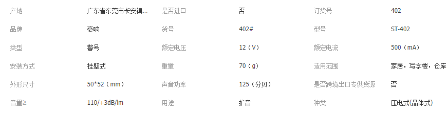 立即發(fā)布求購意向本網頁所展示的有關【廠家直銷壓電式蜂鳴器報警喇叭防盜報警器有線5v9v12v高分貝402_蜂鳴器_東莞市生通安防設備有限公司】的信息/圖片/參數等由全球零部件網的會員【東莞市生通安防設備有限公司】提供,由全球零部件網會員【東莞市生通安防設備有限公司】自行對信息/圖片/參數等的真實性、準確性和合法性負責,本平臺(本網站)僅提供展示服務,請謹慎交易,因交易而產生的法律關系及法律糾紛由您自行協(xié)商解決,本平臺(本網站)對此不承擔任何責任。您在本網頁可以瀏覽【廠家直銷壓電式蜂鳴器報警喇叭防盜報警器有線5v9v12v高分貝402_蜂鳴器_東莞市生通安防設備有限公司】有關的信息/圖片/價格等及提供【廠家直銷壓電式蜂鳴器報警喇叭防盜報警器有線5v9v12v高分貝402_蜂鳴器_東莞市生通安防設備有限公司】的商家公司簡介、聯(lián)系方式等信息。