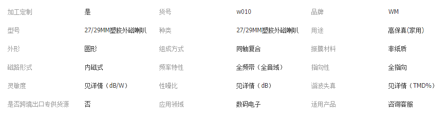 立即發(fā)布求購意向本網(wǎng)頁所展示的有關【16歐 32歐 0.25W小喇叭揚聲器27/29MM塑膠外磁喇叭_蜂鳴器_宿遷市為民電子科技有限公司】的信息/圖片/參數(shù)等由全球零部件網(wǎng)的會員【宿遷市為民電子科技有限公司】提供,由全球零部件網(wǎng)會員【宿遷市為民電子科技有限公司】自行對信息/圖片/參數(shù)等的真實性、準確性和合法性負責,本平臺(本網(wǎng)站)僅提供展示服務,請謹慎交易,因交易而產(chǎn)生的法律關系及法律糾紛由您自行協(xié)商解決,本平臺(本網(wǎng)站)對此不承擔任何責任。您在本網(wǎng)頁可以瀏覽【16歐 32歐 0.25W小喇叭揚聲器27/29MM塑膠外磁喇叭_蜂鳴器_宿遷市為民電子科技有限公司】有關的信息/圖片/價格等及提供【16歐 32歐 0.25W小喇叭揚聲器27/29MM塑膠外磁喇叭_蜂鳴器_宿遷市為民電子科技有限公司】的商家公司簡介、聯(lián)系方式等信息。