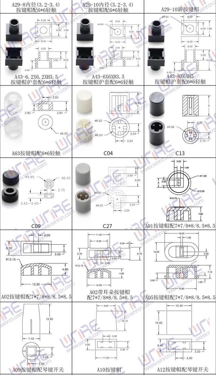 >產(chǎn)品供應(yīng)>電動(dòng)工具>電氣系統(tǒng)>電源開關(guān)及按鈕>輕觸開關(guān)按鍵帽 A14 15 17 29 24 44 56 66 95七彩 開關(guān)按鈕方圓帽 連接器 音視頻插座 輕觸開關(guān)