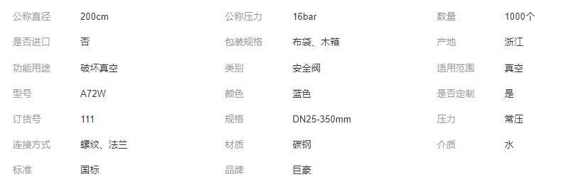 立即發(fā)布求購(gòu)意向本網(wǎng)頁(yè)所展示的有關(guān)【巨豪閥門 鑄鋼負(fù)壓安全閥A72W 不銹鋼法蘭真空破壞器_安全閥_浙江巨豪閥門有限公司】的信息/圖片/參數(shù)等由全球零部件網(wǎng)的會(huì)員【浙江巨豪閥門有限公司】提供,由全球零部件網(wǎng)會(huì)員【浙江巨豪閥門有限公司】自行對(duì)信息/圖片/參數(shù)等的真實(shí)性、準(zhǔn)確性和合法性負(fù)責(zé),本平臺(tái)(本網(wǎng)站)僅提供展示服務(wù),請(qǐng)謹(jǐn)慎交易,因交易而產(chǎn)生的法律關(guān)系及法律糾紛由您自行協(xié)商解決,本平臺(tái)(本網(wǎng)站)對(duì)此不承擔(dān)任何責(zé)任。您在本網(wǎng)頁(yè)可以瀏覽【巨豪閥門 鑄鋼負(fù)壓安全閥A72W 不銹鋼法蘭真空破壞器_安全閥_浙江巨豪閥門有限公司】有關(guān)的信息/圖片/價(jià)格等及提供【巨豪閥門 鑄鋼負(fù)壓安全閥A72W 不銹鋼法蘭真空破壞器_安全閥_浙江巨豪閥門有限公司】的商家公司簡(jiǎn)介、聯(lián)系方式等信息。