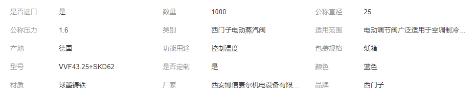 立即發(fā)布求購意向本網(wǎng)頁所展示的有關(guān)【Siemens西門子電動(dòng)流量蒸汽閥溫度積分調(diào)節(jié)閥電磁閥_電磁閥_西安博信賽爾機(jī)電設(shè)備有限公司】的信息/圖片/參數(shù)等由全球零部件網(wǎng)的會(huì)員【西安博信賽爾機(jī)電設(shè)備有限公司】提供,由全球零部件網(wǎng)會(huì)員【西安博信賽爾機(jī)電設(shè)備有限公司】自行對(duì)信息/圖片/參數(shù)等的真實(shí)性、準(zhǔn)確性和合法性負(fù)責(zé),本平臺(tái)(本網(wǎng)站)僅提供展示服務(wù),請(qǐng)謹(jǐn)慎交易,因交易而產(chǎn)生的法律關(guān)系及法律糾紛由您自行協(xié)商解決,本平臺(tái)(本網(wǎng)站)對(duì)此不承擔(dān)任何責(zé)任。您在本網(wǎng)頁可以瀏覽【Siemens西門子電動(dòng)流量蒸汽閥溫度積分調(diào)節(jié)閥電磁閥_電磁閥_西安博信賽爾機(jī)電設(shè)備有限公司】有關(guān)的信息/圖片/價(jià)格等及提供【Siemens西門子電動(dòng)流量蒸汽閥溫度積分調(diào)節(jié)閥電磁閥_電磁閥_西安博信賽爾機(jī)電設(shè)備有限公司】的商家公司簡介、聯(lián)系方式等信息。